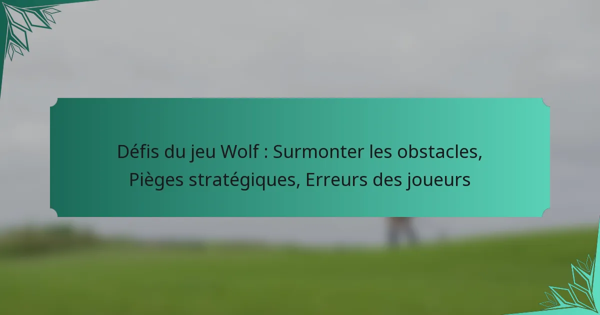 Wolf Game propose une variété de défis que les joueurs doivent affronter, y compris les mécaniques de jeu, la gestion des ressources et la prise de décisions stratégiques. En comprenant ces obstacles et en reconnaissant les erreurs courantes des joueurs, les individus peuvent améliorer leur performance et leur plaisir global du jeu. Des stratégies efficaces telles que la gestion des ressources et l’adaptation des tactiques de jeu sont essentielles pour surmonter ces obstacles et atteindre le succès.